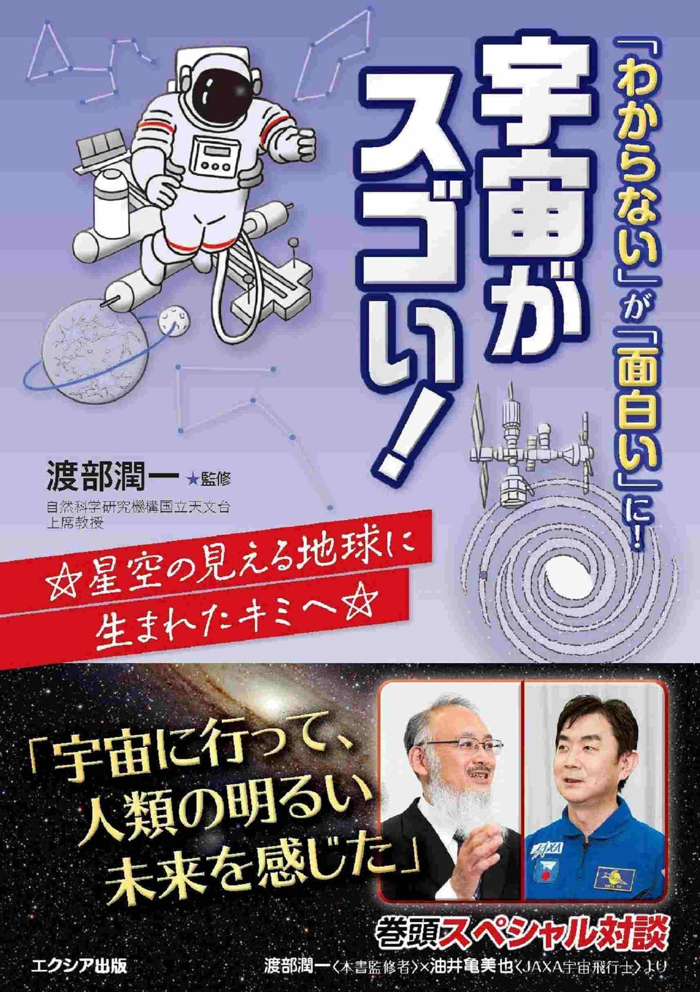 本書監修者・渡部潤一教授と油井亀美也JAXA宇宙飛行士のスペシャル対談を巻頭掲載。