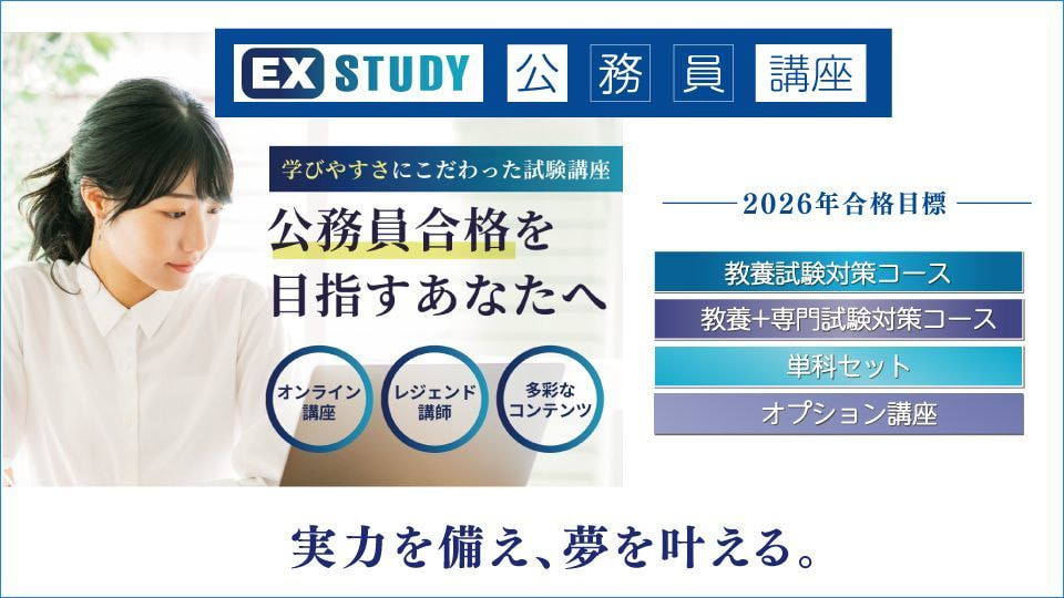 書籍情報 [大卒程度]公務員試験参考書 [高卒程度・社会人]公務員試験参考書 単行本[実用書・学参] 電子書籍 高卒・社会人公務員試験 過去問ザ・ベストSer.6文章理解/資料解釈 定価1,760円(税込) バスケットボール試合で無双するコニーの自主練メニュー 定価1,650円(税込) 高卒・社会人公務員試験過去問ザ・ベストSer.4人文科学 定価1,760円(税込) 高卒・社会人公務員試験過去問ザ・ベストSer.2数的推理 定価1,760円(税込) 高卒・社会人公務員試験過去問ザ・ベストSer.3社会科学 定価1,760円(税込) 高卒・社会人公務員試験過去問ザ・ベストSer.5自然科学 定価1,760円(税込) バスケットボール戦術を極める!世界基準のセットプレー88 定価1,980円(税込) 高卒・社会人公務員試験過去問ザ・ベストSer.1判断推理 定価1,760円(税込) お知らせ {"articleType":"1","limit_article_num":"5","article_disp_offset":"0","article_disp_offset_num":"","article_new_offset":"1","article_new_offset_num":"100","blogs":[{"sid":"XMMMiuFQENt","name":"blog_ NEWS","order":"newer","categories":"","tags":"","pathToFolder":"./news/","topfile":"top.html","rss":"0"}]} [%article_date_notime%] [%new:新着%] [%title%] おしらせ一覧 EX-STUDY エクスタディ オンライン講座 EX-STUDY公務員講座 2026年度合格コース申込受付中!・教養試験対策コース・教養+専門試験対策コース・単科セット・オプション講座 EX-STUDY行政書士講座 2026年度合格コース申込受付中!・行政書士試験指導歴10年超・勉強から離れた社会人受験者にも「わかりやすさ」、「伝わりやすさ」に定評がある寺本康之講師によるオンライン講座。令和8年試験に向けて時間も場所も自分のペースで効率的に学習しましょう! EX-STUDY中小企業診断士講座 中小企業診断士講座!申込受付中!1次試験+2次試験対策セット1次試験対策セット2次試験対策セット1次対策科目別セット(7科目)