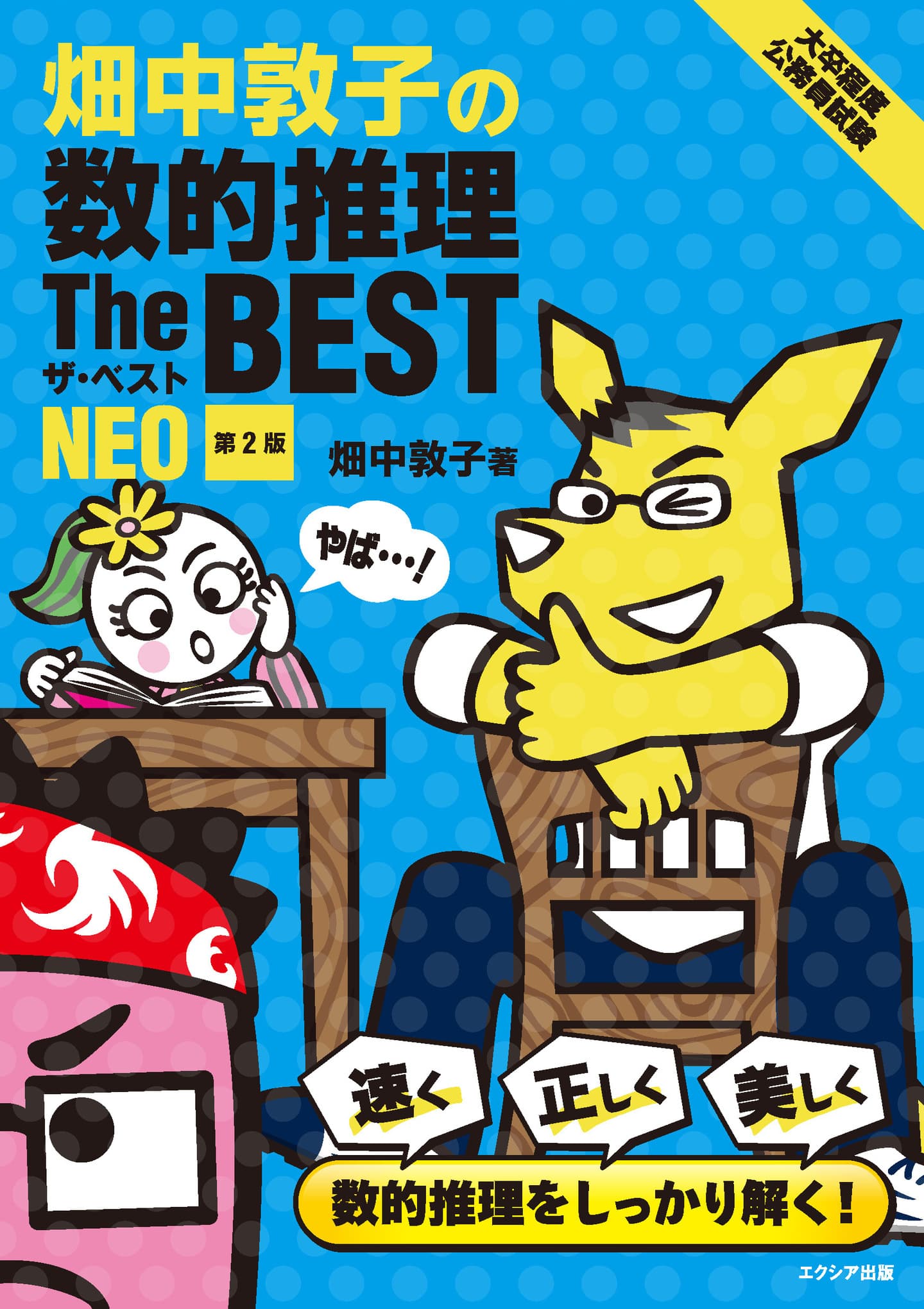 書籍情報 [大卒程度]公務員試験参考書 [高卒程度・社会人]公務員試験参考書 単行本[実用書・学参] 電子書籍 大卒程度 公務員試験 畑中敦子の数的推理ザ・ベストNEO[第2版] 定価2,090円(税込) 高卒・社会人公務員試験 過去問ザ・ベストSer.6文章理解/資料解釈 定価1,760円(税込) バスケットボール試合で無双するコニーの自主練メニュー 定価1,650円(税込) 高卒・社会人公務員試験過去問ザ・ベストSer.4人文科学 定価1,760円(税込) 高卒・社会人公務員試験過去問ザ・ベストSer.2数的推理 定価1,760円(税込) 高卒・社会人公務員試験過去問ザ・ベストSer.3社会科学 定価1,760円(税込) 高卒・社会人公務員試験過去問ザ・ベストSer.5自然科学 定価1,760円(税込) 高卒・社会人公務員試験過去問ザ・ベストSer.1判断推理 定価1,760円(税込) お知らせ {"articleType":"1","limit_article_num":"5","article_disp_offset":"0","article_disp_offset_num":"","article_new_offset":"1","article_new_offset_num":"100","blogs":[{"sid":"XMMMiuFQENt","name":"blog_ NEWS","order":"newer","categories":"","tags":"","pathToFolder":"./news/","topfile":"top.html","rss":"0"}]} [%article_date_notime%] [%new:新着%] [%title%] おしらせ一覧 EX-STUDY エクスタディ オンライン講座 EX-STUDY公務員講座 2026年度合格コース申込受付中!・教養試験対策コース・教養+専門試験対策コース・単科セット・オプション講座 EX-STUDY行政書士講座 2026年度合格コース申込受付中!・行政書士試験指導歴10年超・勉強から離れた社会人受験者にも「わかりやすさ」、「伝わりやすさ」に定評がある寺本康之講師によるオンライン講座。令和8年試験に向けて時間も場所も自分のペースで効率的に学習しましょう! EX-STUDY中小企業診断士講座 中小企業診断士講座!申込受付中!1次試験+2次試験対策セット1次試験対策セット2次試験対策セット1次対策科目別セット(7科目)
